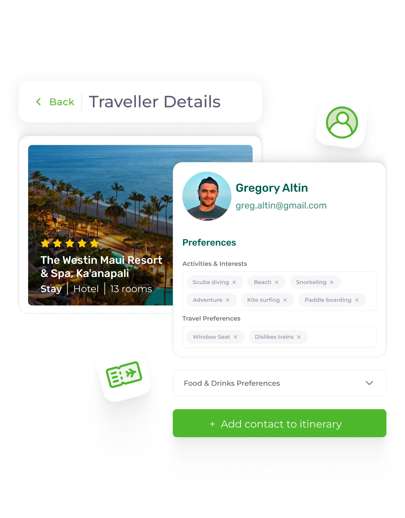 Deliver seamless, personalised service that keeps clients coming back with Contact Manager. Create or update traveller details before you build or while you build. You and your team have one central, accurate hub that keeps every contact, preference, and trip perfectly in sync.